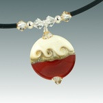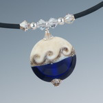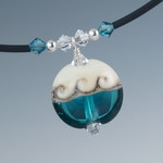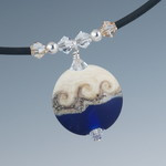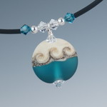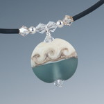 One of my colorful half and half beads is the focal point of this distinctive choker. One side has a three swirl wave design while the other side has a single swirl. Wear either side for a different look. In addition, you can now choose from several "sea glass" colors. These translucent beads have been etched giving them a natural sea glass look.