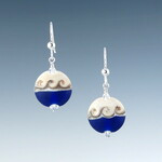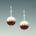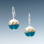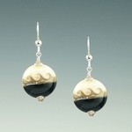 This distinctive round earring is half ivory and half color with a silver accent line in-between. One side has three waves while the other side has a single swirl design. Wear either side for a different look.