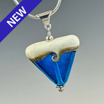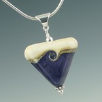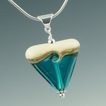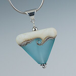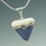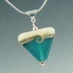 This striking triangular pendant offers a pleasing change in pendant shape and design with its ivory and silver band on the top and a color on the bottom. It has a single swirl (or wave) design on one side and a simple silver stripe on the other. Finished with sterling findings and bail, it is available in a number of solid, translucent and matte colors.